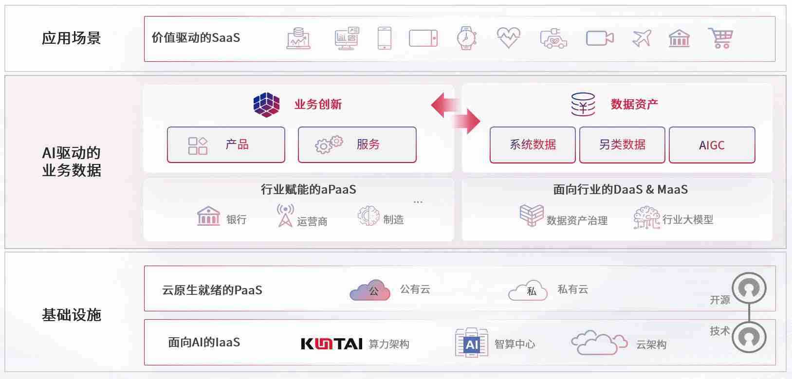 数字时代,,围绕企业数字化转型的关键要素,,星欧娱乐数码开创性的提出数云融合战略和技术体系框架,,着力在云原生、、、、数字原生、、、AI原生和信创产业上架构产品和服务能力,,,为处在不同数字化转型阶段的快消零售、、、、汽车、、、金融、、、、医疗、、、政企、、、教育、、、运营商等行业客户提供泛在的敏捷IT能力和融合的数据驱动能力,,,构建跨界融合创新的数字业务场景和新业务模式,,,,助力企业级客户建立面向未来的核心能力和竞争优势,,全面推动社会的数字化、、、、智能化转型升级。。